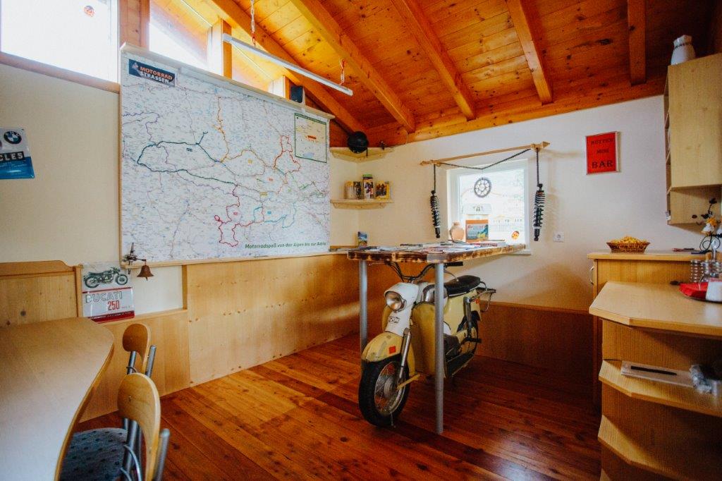 Es stehen eine versperrbare Garage, ein Anhängerparkplatz, ein Trockenraum, eine Waschgelegenheit mit Hochdruckreiniger, eine Schrauberecke und ein Biker-Infopoint zur Verfügung.